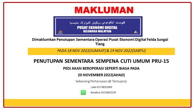 MAKLUMAN PENUTUPAN SEMENTARA OPERASI PEDi FELDA SUNGAI TIANG SEMPENA PRU KE-15